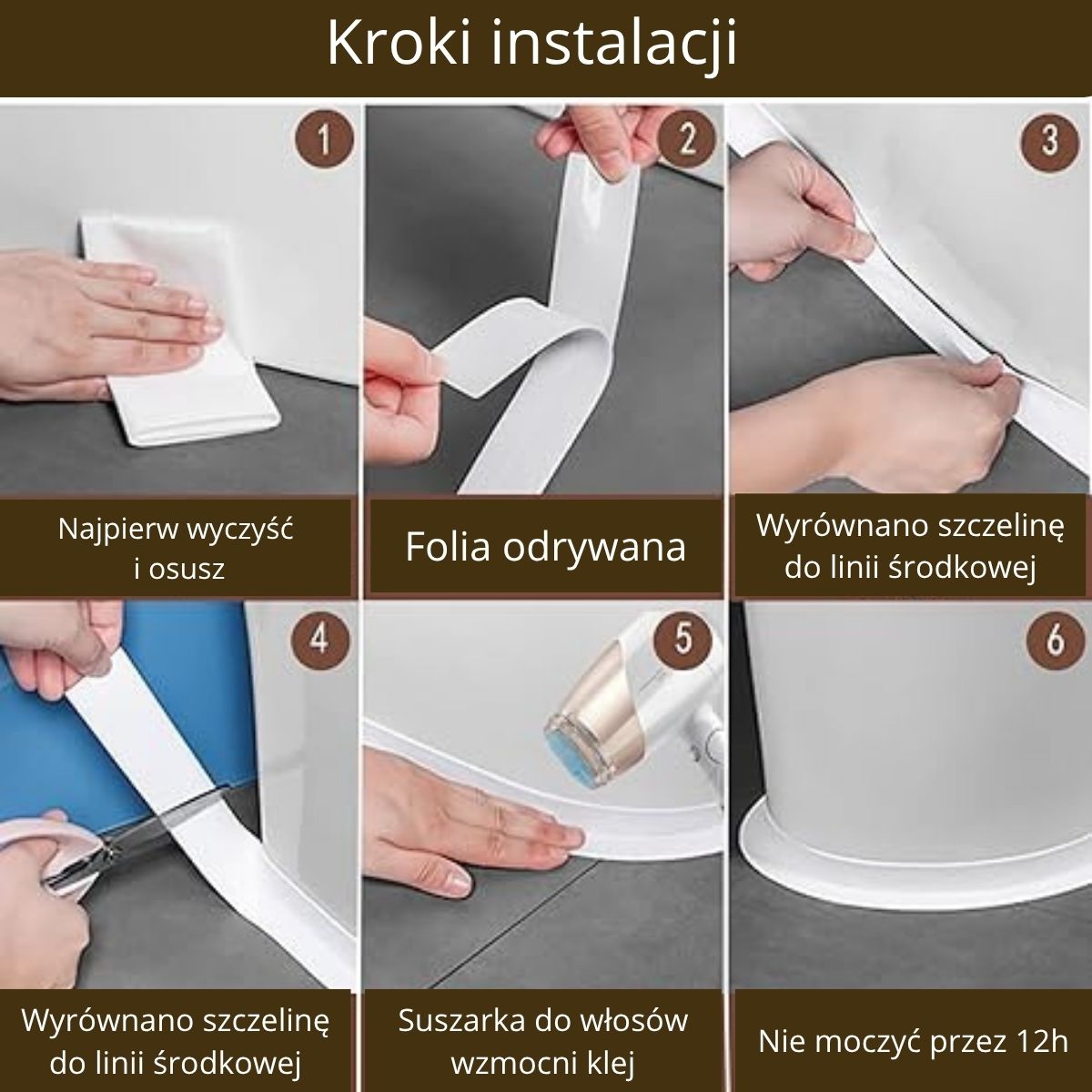Wystarczy odkleić i docisnąć samoprzylepną taśmę do powierzchni w ciągu kilku minut. Przyklej ją suszarką do włosów. Łatwa w aplikacji, praktyczna i oszczędza czas.